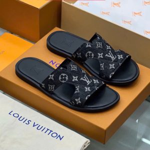 Dép Louis Vuitton nam quai chéo đen bọc vải