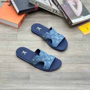Dép Louis Vuitton nam quai chéo xanh bọc vải