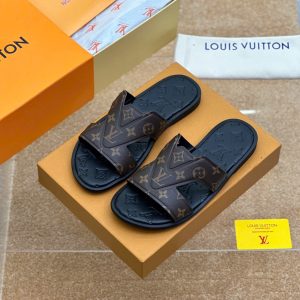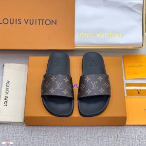 Dép Louis Vuitton nam quai ngang hoa nâu